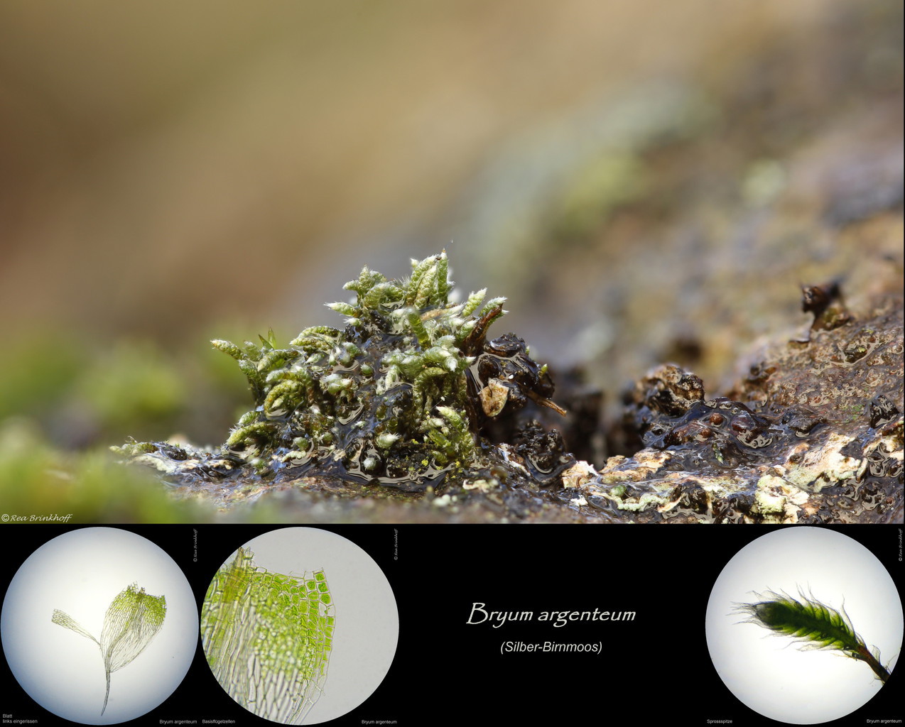 Typisch ist der leicht silbrige Schimmer, verursacht durch die hyalinen Zellen im oberen Blattbereich. Die Zweige der kleinen Pölsterchen werden höchstens 1cm groß. Die kleinen Blättchen sind etwa 0,75-1,25mm lang, wobei die langgezogene hyaline Spitze gut 1/3 des Blattes ausmacht. Fast überall zu finden, auch in der Stadt!
