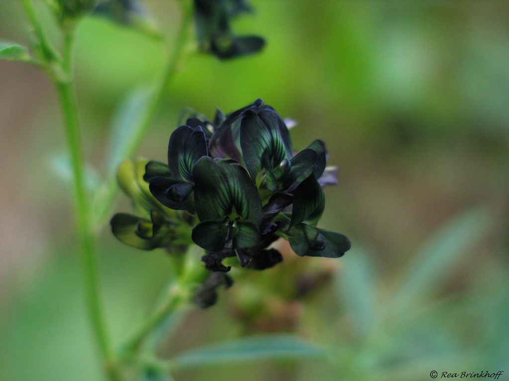 Hier mal mit schwärzlichen Kronblättern. Eine Kreuzung aus Sichel-Luzerne (Medicago falcata) und Saat-Luzerne (Medicago sativa).