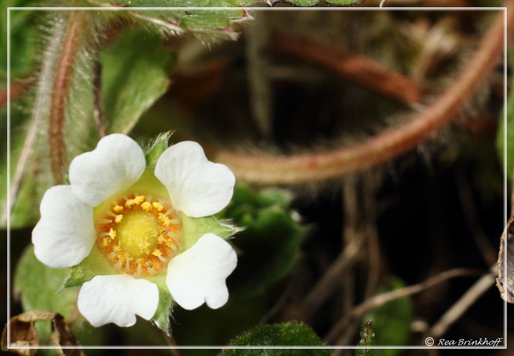 Die Blütenblätter sind verkehrtherzförmig und berühren sich aufgeblüht nicht. Kelchblätter und Blütenblätter sind fast gleichlang. Blatt- und Blütenstiele sind gleichmäßig lang behaart. Blätter sind dreizählig.Das Mittelblättchen mit sehr breiten Zähnen, der Mittelzahn ist kürzer. Die Seitenblättchen mit asymmetrischen Grund.(Keine Erdbeere als Frucht!)