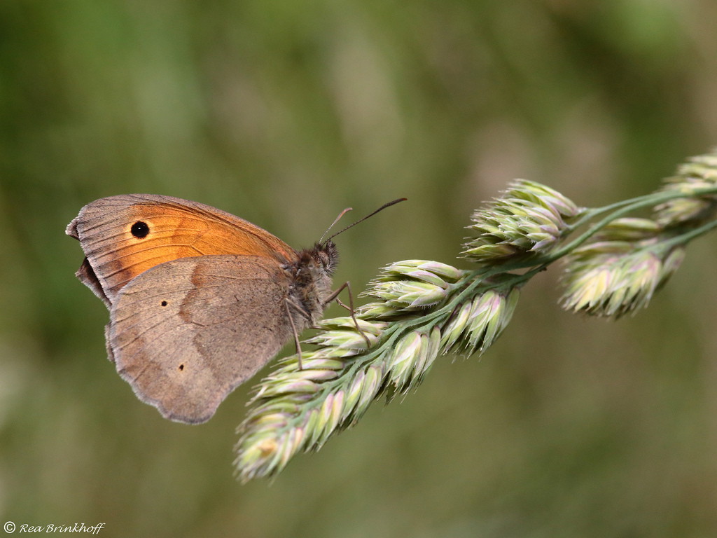 Typisch ist der hellgerandete, weiß gekernte, schwarze Augenfleck auf der Vorderflügelunterseite (auch auf der Oberseite vorhanden), sowie die helle Binde mit den zwei schwarzen Sprenkeln auf den Hinterflügelunterseite.(Die Sprenkel können auch fehlen). Die Flügelspannweite beträgt ca. 4,5 cm.