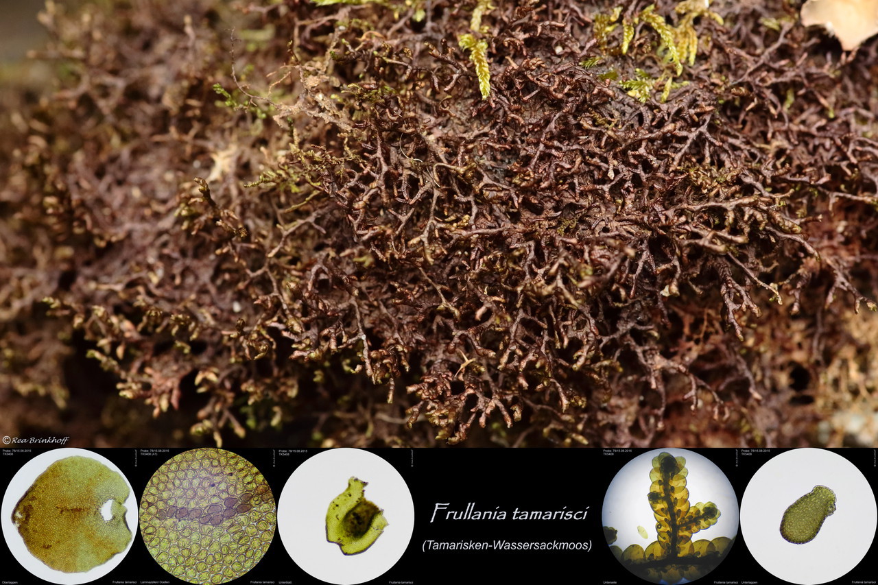 Typisch für dieses meist rötlich gefärbte Lebermoos sind die länglichen Wassersäcke auf der Unterseite, sowie die oft in einer Linie stehenden Ocellen auf den Oberlappen. Die Oberlappen sind gut 1,0-1,5mm lang.