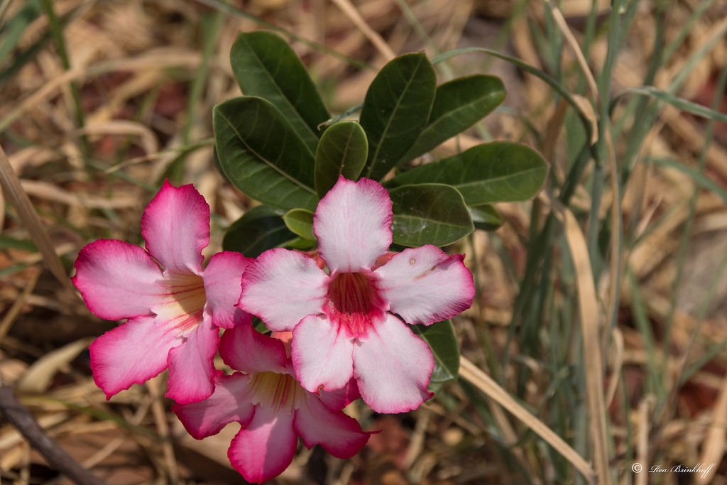 Die 5 Kronblätter sind im Basisteil zu einer Röhre verwachsen. Die Blüten sind mit Kronröhre ca. 7cm lang. Die Kronzipfel sind meist gut 3cm lang. Während der Blütezeit verliert sie manchmal die Blätter.
