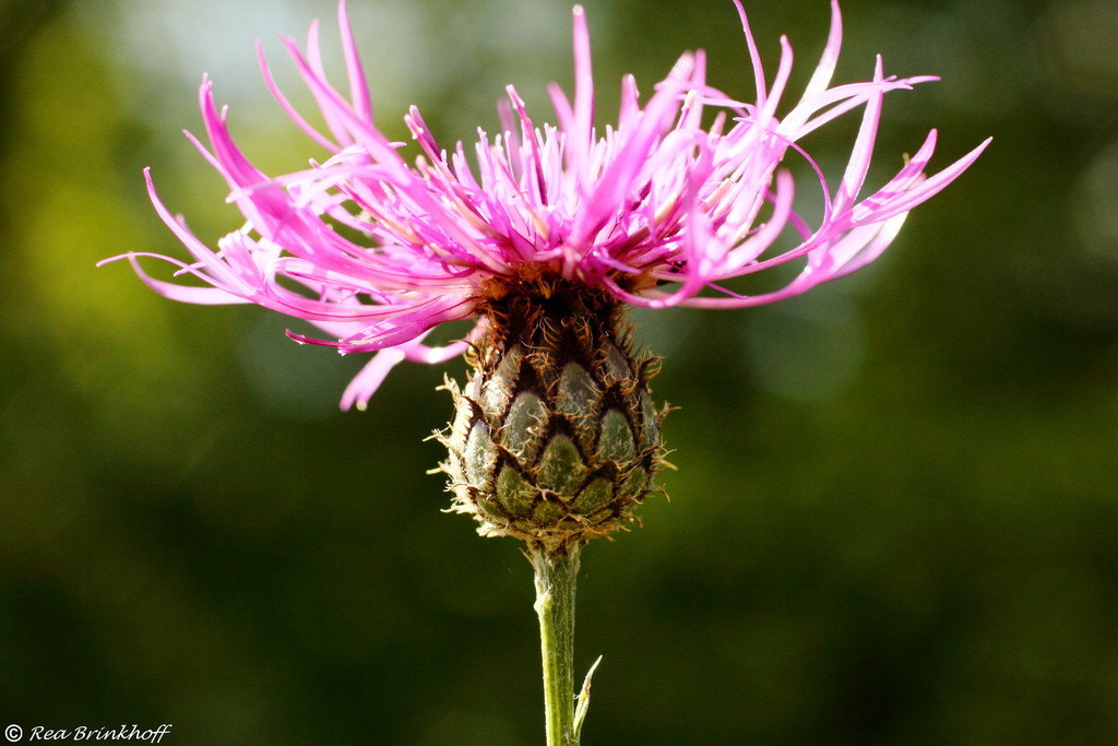 Die braunschwarze, gefranste Spitze der sonst grünen Hüllblätter ist typisch.