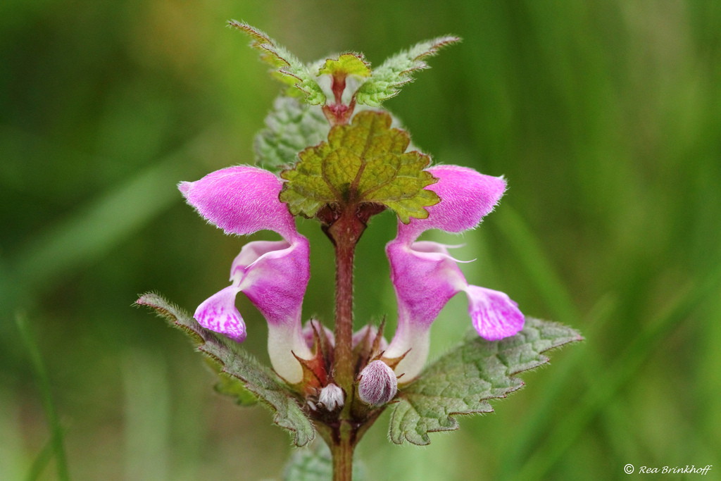 Die Kronröhre besitzt im Gegensatz zur purpurnen Taubnessel eine starke Krümmung. Die Blätter haben oft einen weißlichen Mittelstreifen.