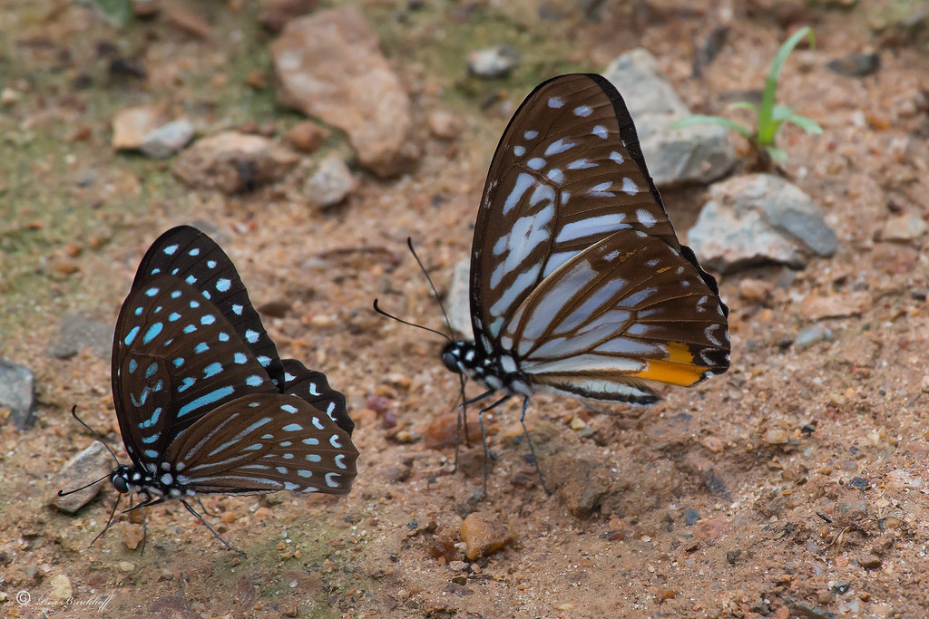 Rechts dahinter Graphium xenocles kephisos zum Größenvergleich.